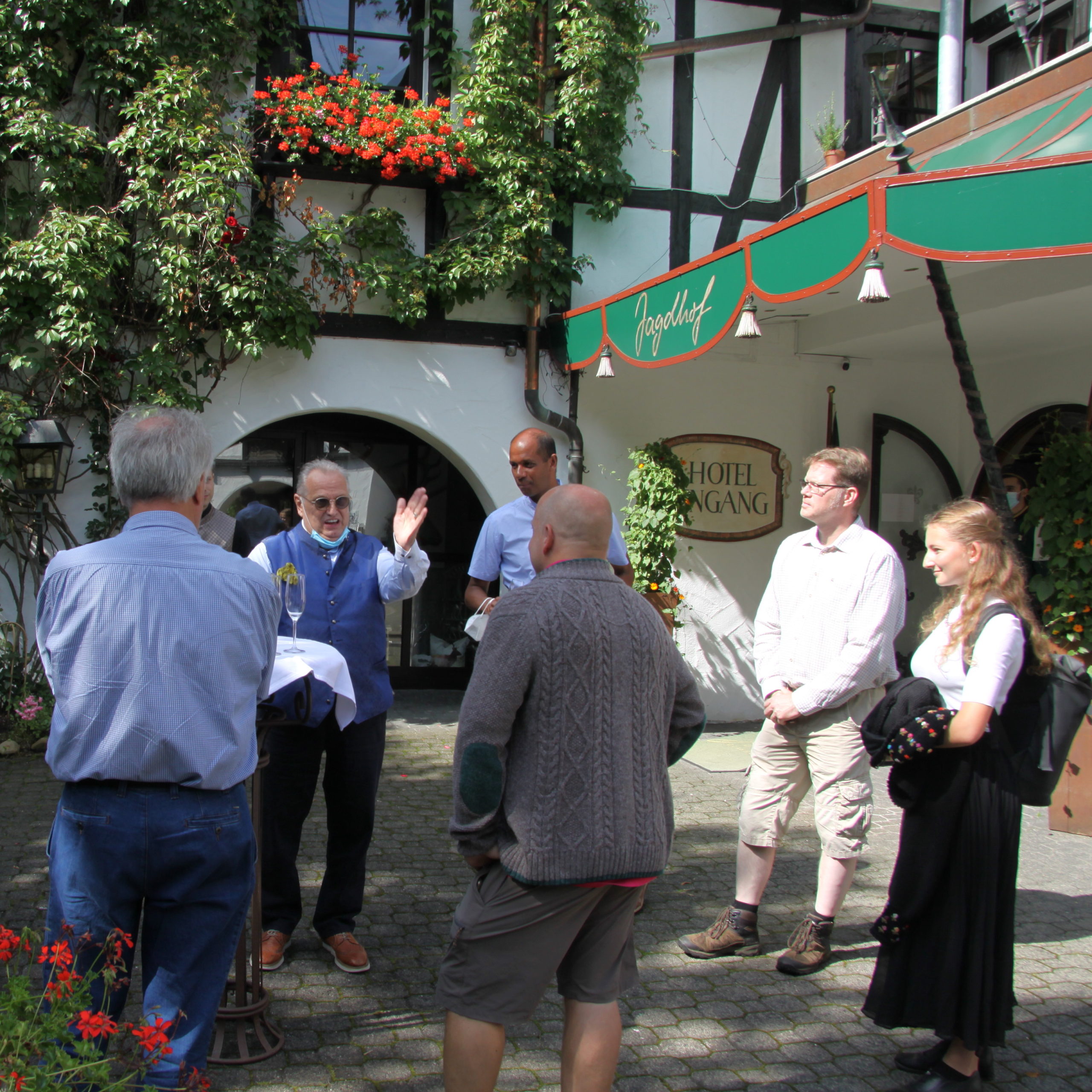 Guido Müller startete in Bad Laasphe seine Ge(h)spräche im Bundestagswahlkampf. Er plant alle Städte und Gemeinden zu besuchen, im Idealfall auch aktiv zu erwandern. Bad Laasphe hat er dabei nicht zufällig ausgewählt. In Amtshausen finden sich die ältesten Hinweise seiner Familienchronik. Zurückverfolgen lässt sich der Stammbaum seiner Familie in Wittgenstein bis ins 16. Jahrhundert. Weber MT war die erste Station seiner Wanderung. Von hier begleiteten Guido Müller die Stadtratsmitglieder Rüdiger Petri und Klaus Preiß und der FDP Kreisvorsitzende Peter Hanke. Ziel der Wanderung war das Fünf-Sterne-Haus Edmund Dornhöfer. Der Vollblut-Gastronom lud zum Austausch in seine Glashütte ein. Und hat man mit den Folgen von Corona nicht schon genug Probleme zu lösen, kämpft man seit Jahren mit dem Breitbandanschluss sowie dem fehlenden Handyempfang und – wie die gesamte Branche – mit Schwierigkeiten geschultes zusätzliches Personal zu finden. Wenigstens beim ersten Problem gibt es Hoffnung. Für eines der besten Hotels in Deutschland ist es schwer, Tagungen und Konferenzen zu verkaufen, wenn den Gästen keine Erreichbarkeit garantiert werden kann. Die FDP-Vertreter werden an der Sache dranbleiben und sich für einen schnellen FTTH-Ausbau einsetzen. „Am besten für alle Wittgensteiner Haushalte und Firmen“, so Müller. Beim Personal wird die Situation schwierig bleiben, dabei ist das Haus ein beliebtes Sprungbett für eine erfolgreiche Karriere in der Hotellerie.