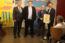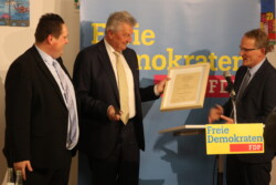 Die Freunde historischer Technik e.V. – Träger des Technikmuseums Freudenberg – sowie der FDP Kreisvorsitzende, Dr. Andreas Weigel, konnten unter den zahlreichen Gästen Vertreter verschiedenster Parteien und ehemalige Preisträger aus vier Jahrzehnten begrüßen. Die Jury (die sich aus den Vorsitzenden und Stellvertretern des Kreisverbandes und der Kreistagsfraktion zusammensetzt) bestehend aus Weigel, Guido Müller und Peter Hanke – hatte die Qual der Wahl und entschied sich in den vergangenen Monaten, aus den vielen eingegangenen Vorschlägen, schließlich für Axel Barten, Wolfgang Könen und die Freunde historischer Technik. Axel Barten, herausragende Unternehmerpersönlichkeit aus dem Maschinenbau, wurde „für sein außergewöhnliches unternehmerisches und ehrenamtliches Engagement sowie seine besonderen Verdienste in Bezug auf die Förderung zukunftsweisender Bildungskonzepte“ geehrt. Für seine vielfältige ehrenamtliche Arbeit erhielt der liberale Kommunalpolitiker, Wolfgang Max Könen aus Siegen, den Ehrenpreis. Stellvertretend für den gleichberechtigten Vorstand „Freunde historischer Technik“ wurde der Haubergsknipp „für die lebendige Erinnerung an die frühindustrielle Entwicklung im südwestfälischen Raum“ an Hans-Jürgen Klappert überreicht. Die Jury erklärt unisono: „Unsere Preisträger haben in ihren jeweiligen Bereichen herausragende Maßstäbe gesetzt und leisten einen bedeutenden Beitrag zum Gemeinwohl in unserer Region und oft weit darüber hinaus.“