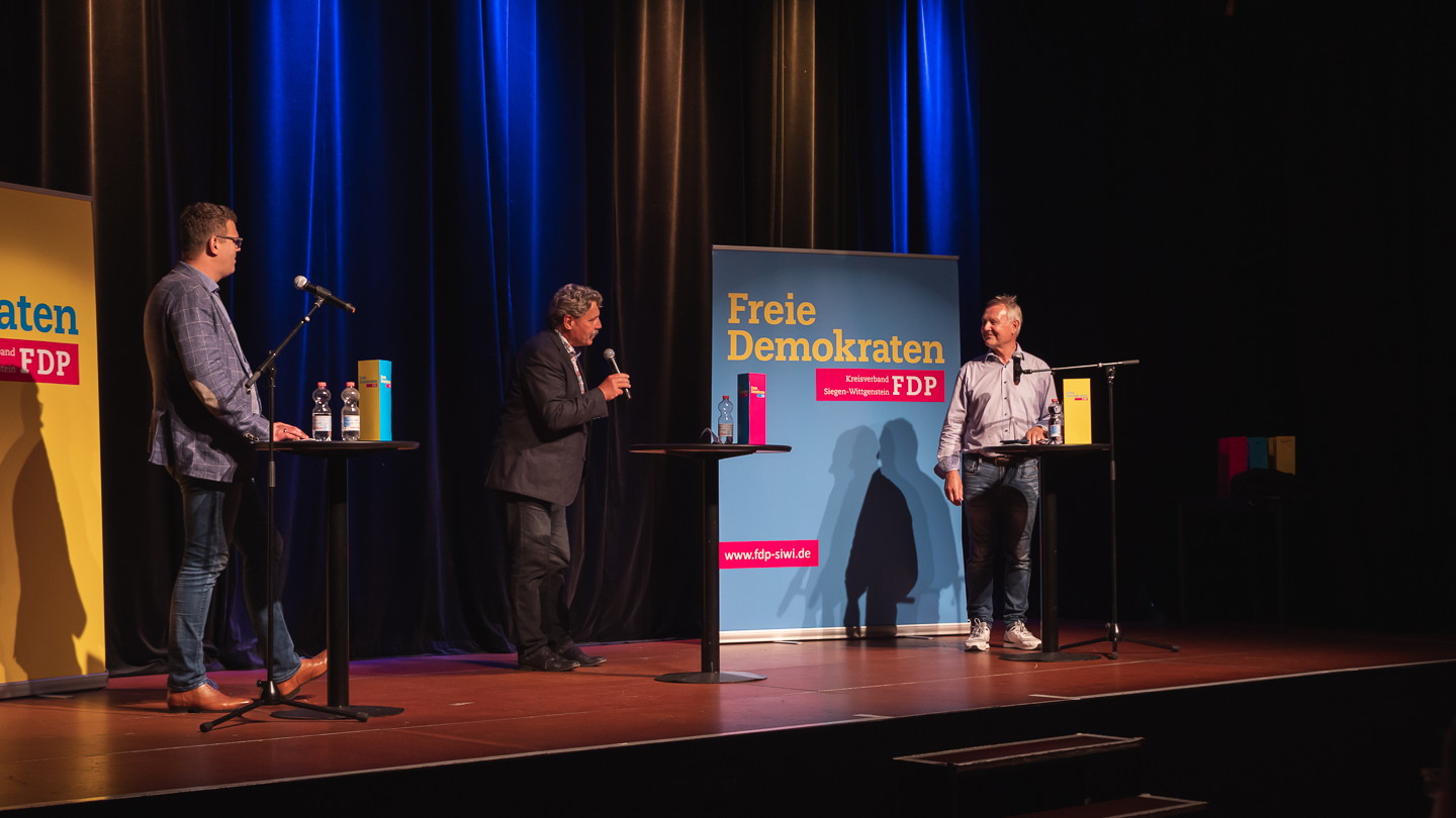 Die FDP-Fraktion Siegen-Wittgenstein lud im Rahmen ihrer Veranstaltungsreihe KLARTEXT jetzt Jäger und Waldbauern zu einem öffentlichen Symposium über die Zukunft des heimischen Waldes ein. Wälder sind multifunktional, speichern Treibhausgase, bieten Wildtieren einen Lebensraum, den Menschen Erholung und der Wirtschaft Rohstoffe. Es war nach langer Corona-Pause die erste öffentliche politische Veranstaltung. Im Schauplatz im Siegener Kulturhaus Lÿz merkte man den beiden Fraktionsvorsitzenden Guido Müller und Peter Hanke sowie den gut vierzig Teilnehmenden an, dass es gut ankam, endlich mal wieder live miteinander zu diskutieren. Streit blieb an diesem Abend aus, denn die beiden geladenen Experten aus dem Bundes- und Landtag, Karlheinz Busen, MdB und Markus Diekhoff MdL, fanden mit den Beschlüssen der Fraktionen an Spree und Rhein durchaus Anklang.